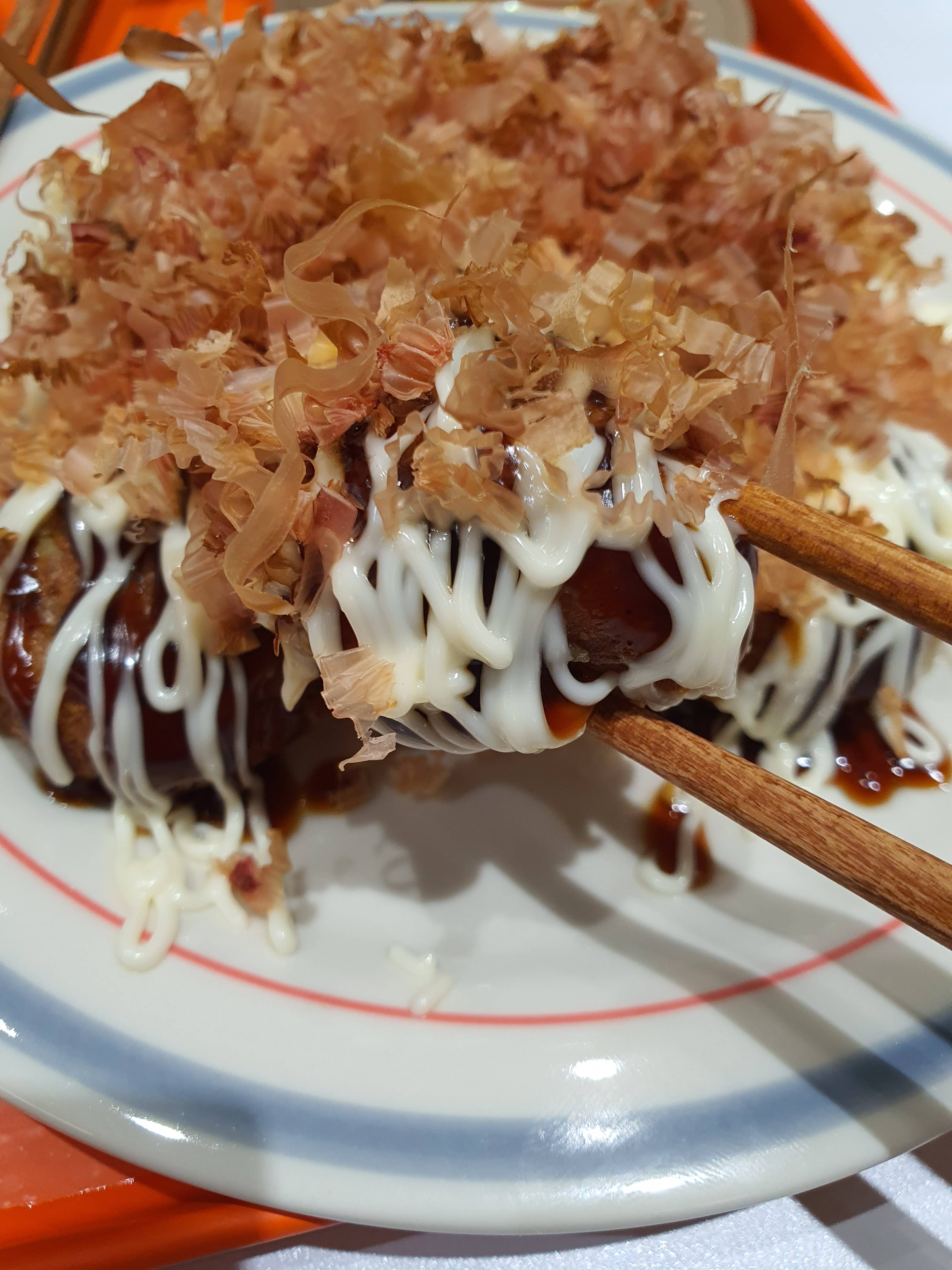타코야끼 위에 가다랑어포를 이렇게 듬뿍 뿌려주는 타코야끼 가게는 여기가 처음이었습니다.