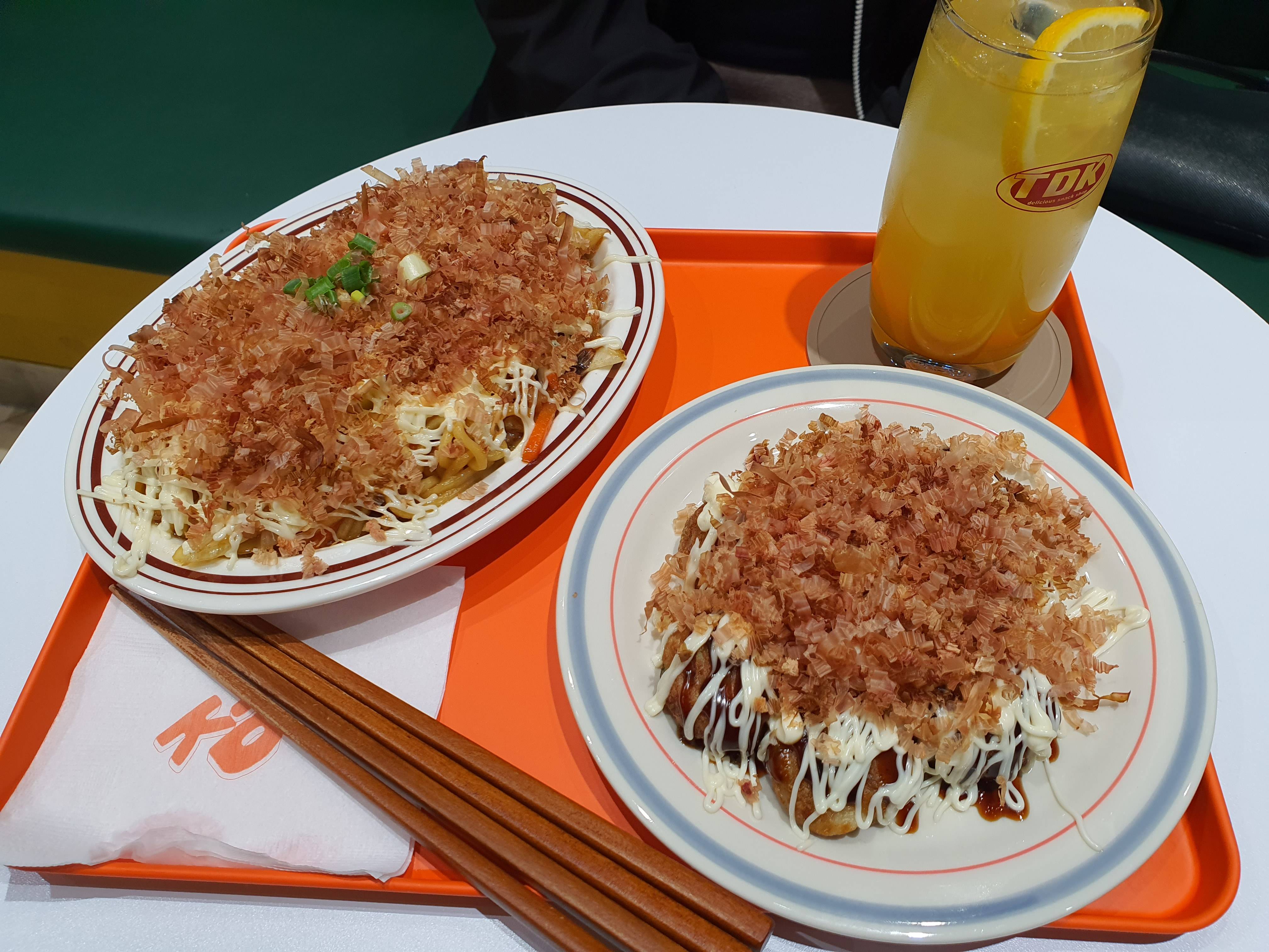오리지널 타코야키(8 pcs), 오리지널 야끼소바 그리고 유자하이볼을 주문하였습니다.