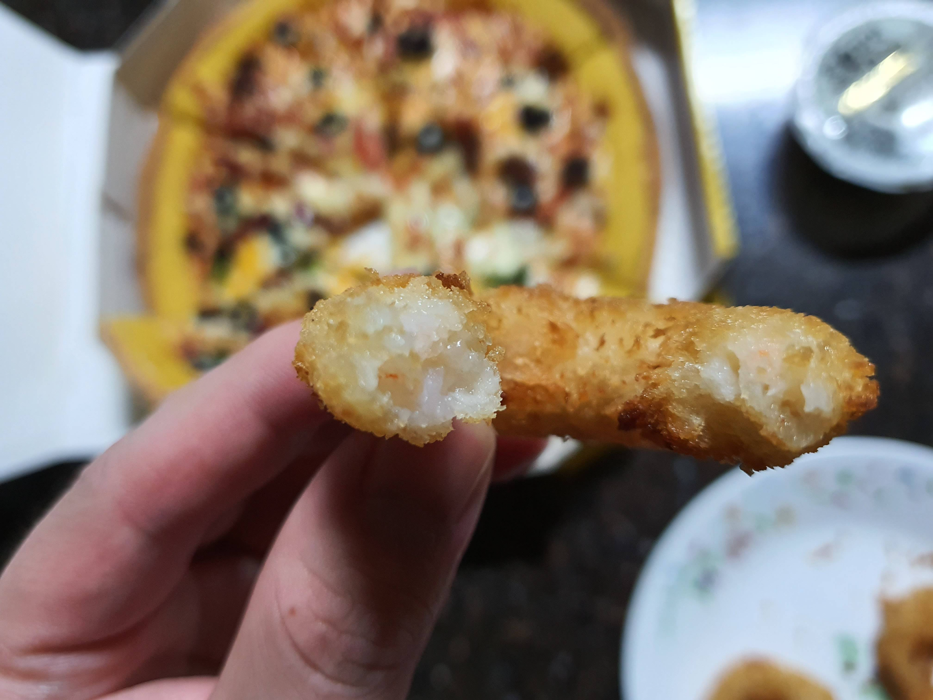 갓 튀긴 고소한 냄새가 코를 자극하는데 저번에 모 프랜차이즈의 새우 링을 먹고 나서 실망했던 트라우마가 뇌를 강타했기 때문에 바로 내부 사이즈를 확인해 봤습니다.