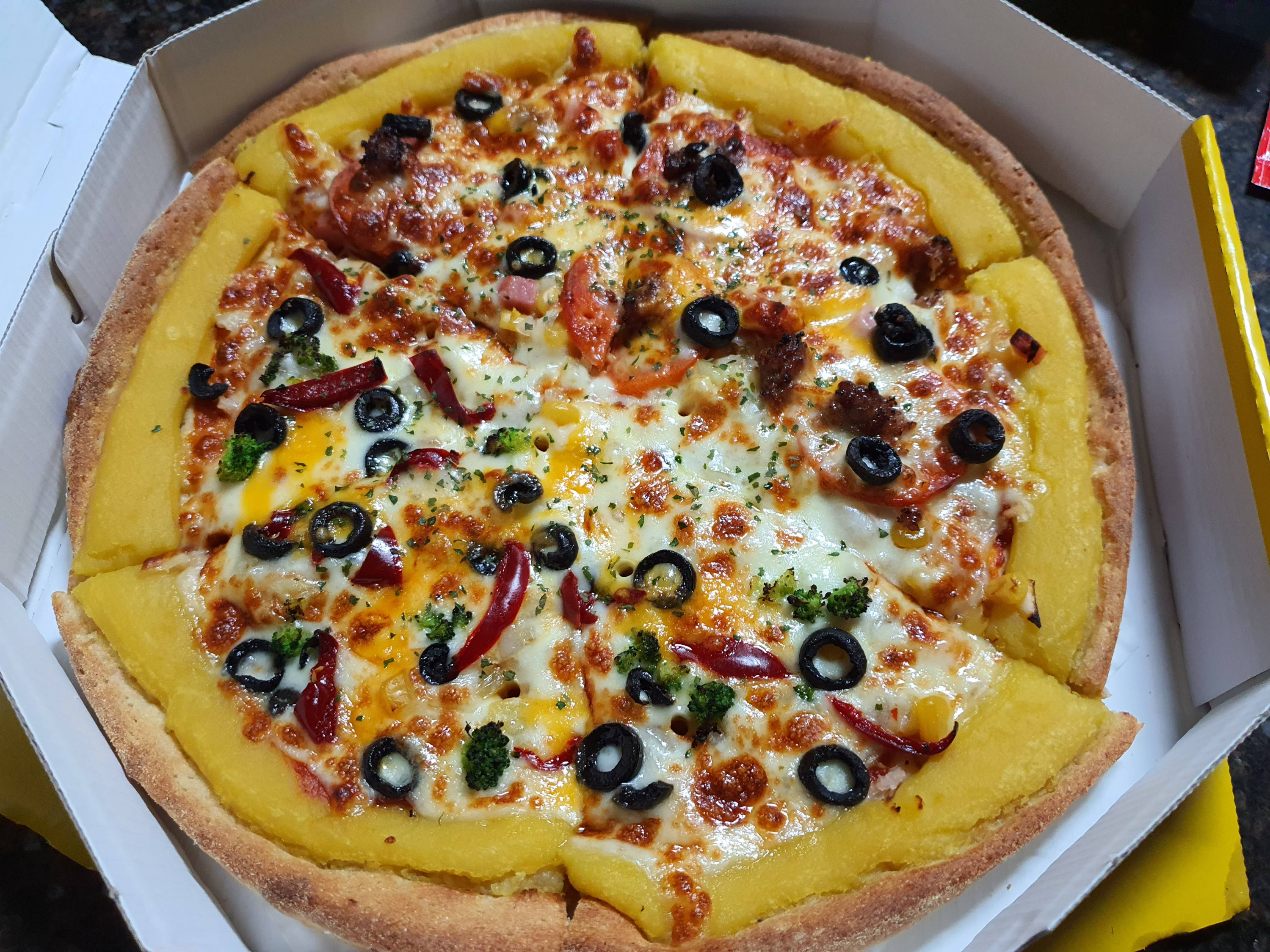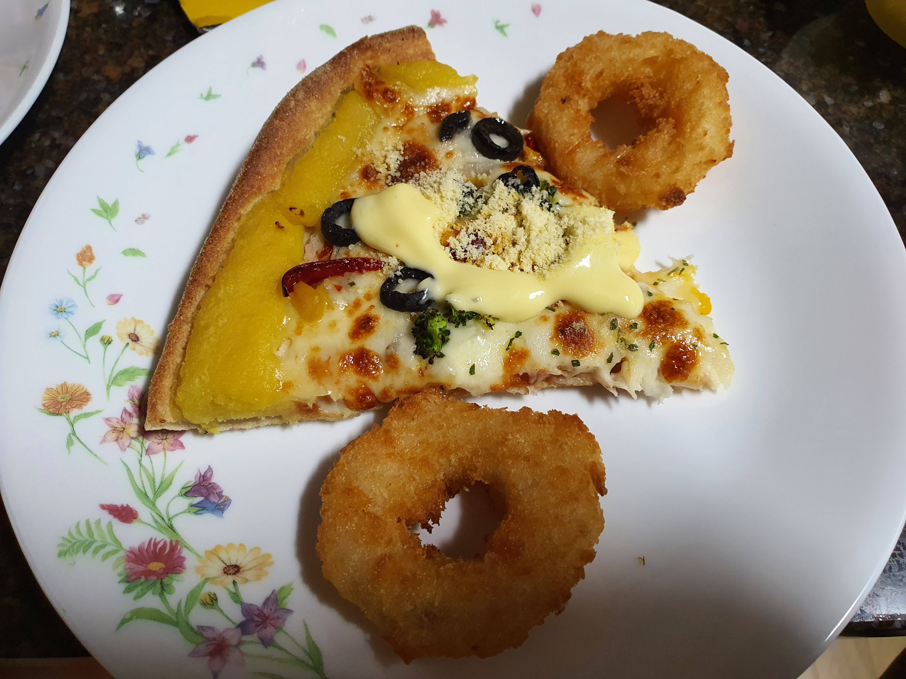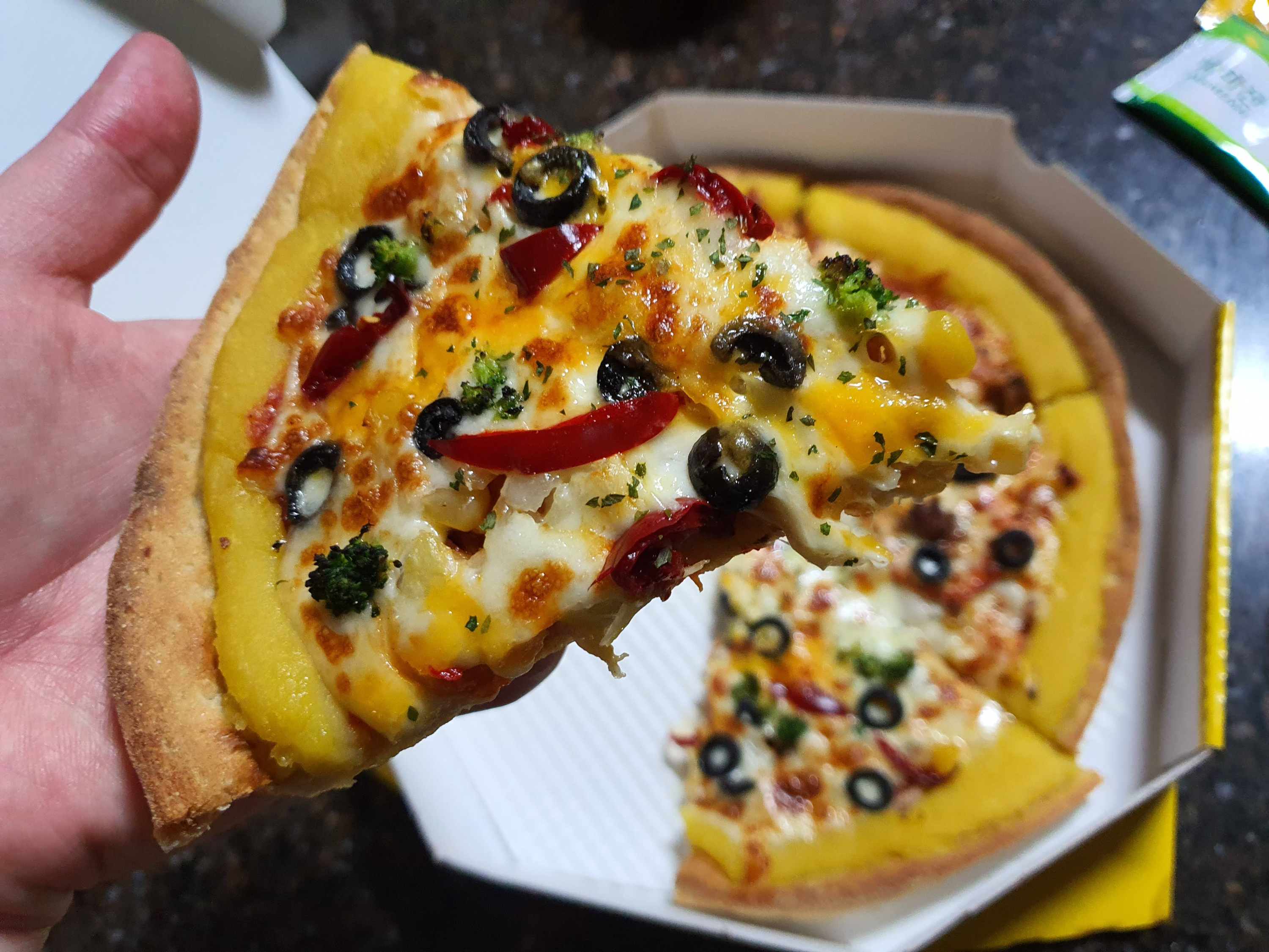 웰빙다이어트반반과 왕손콤비네이션 반이 섞인 조합에 크러스트는 고구마로 둘렀습니다.