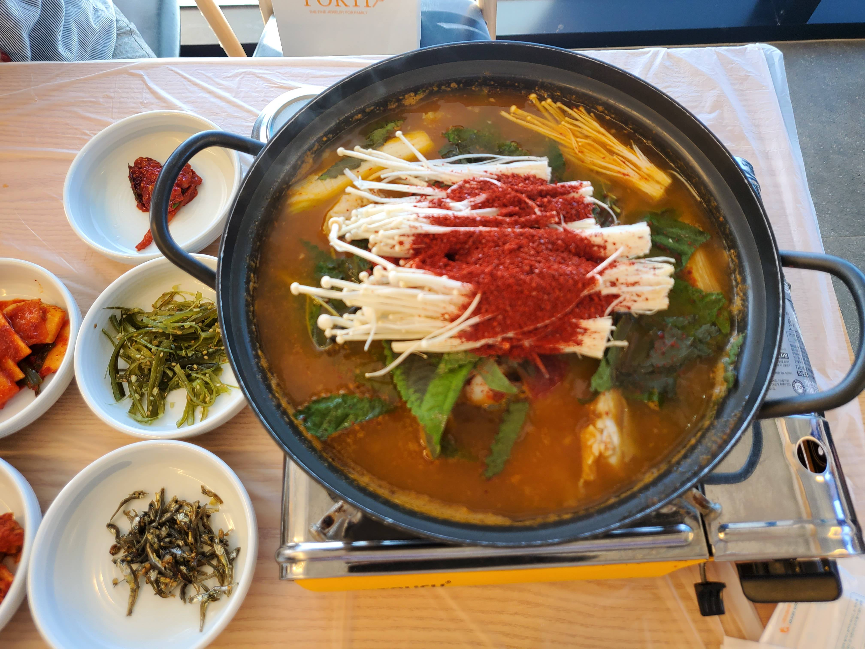 새콤하면서 매콤한 맛이 따로 놀지 않고 잘 섞여있고 안에 들어 있는 내용물이 너무 많아도 너무 많습니다.