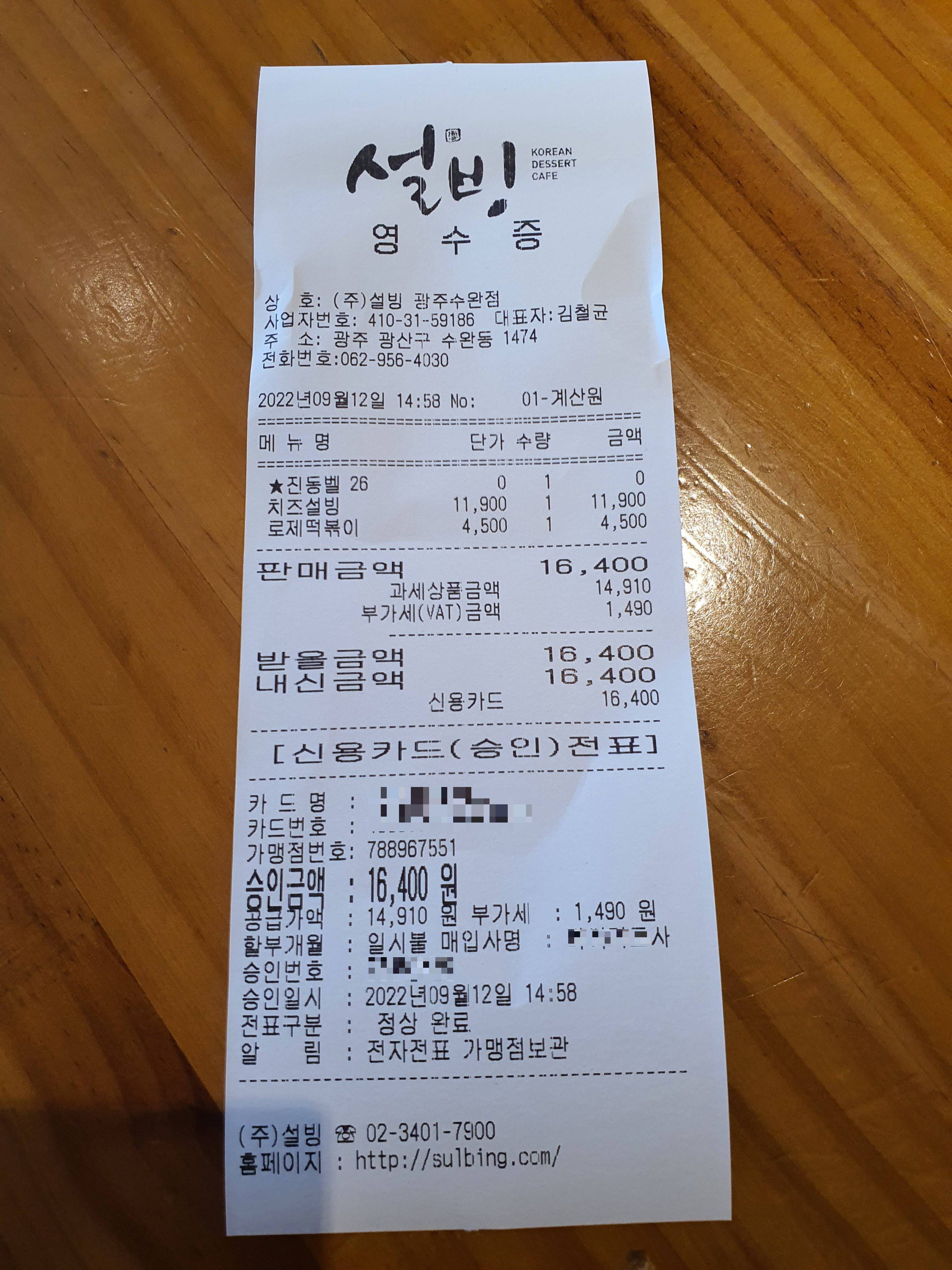 저희가 오늘 주문한 메뉴는 치즈 설빙(11,900원)과 로제 떡볶이(4,500원)입니다.