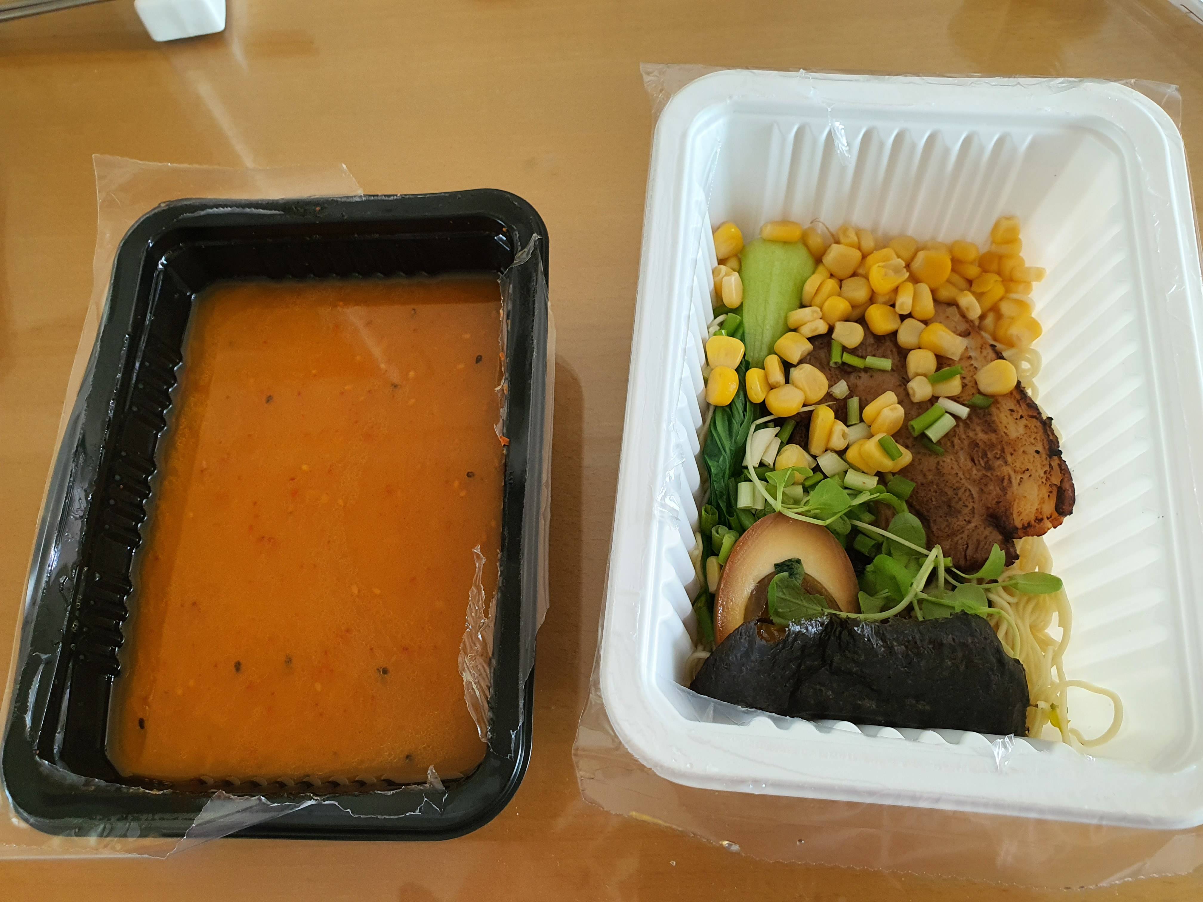 라멘의 특성상 뜨거운 국물에 같이 담겨서 오면 다 퍼지기 때문에 국물과 내용물은 따로 분리되어 있습니다.