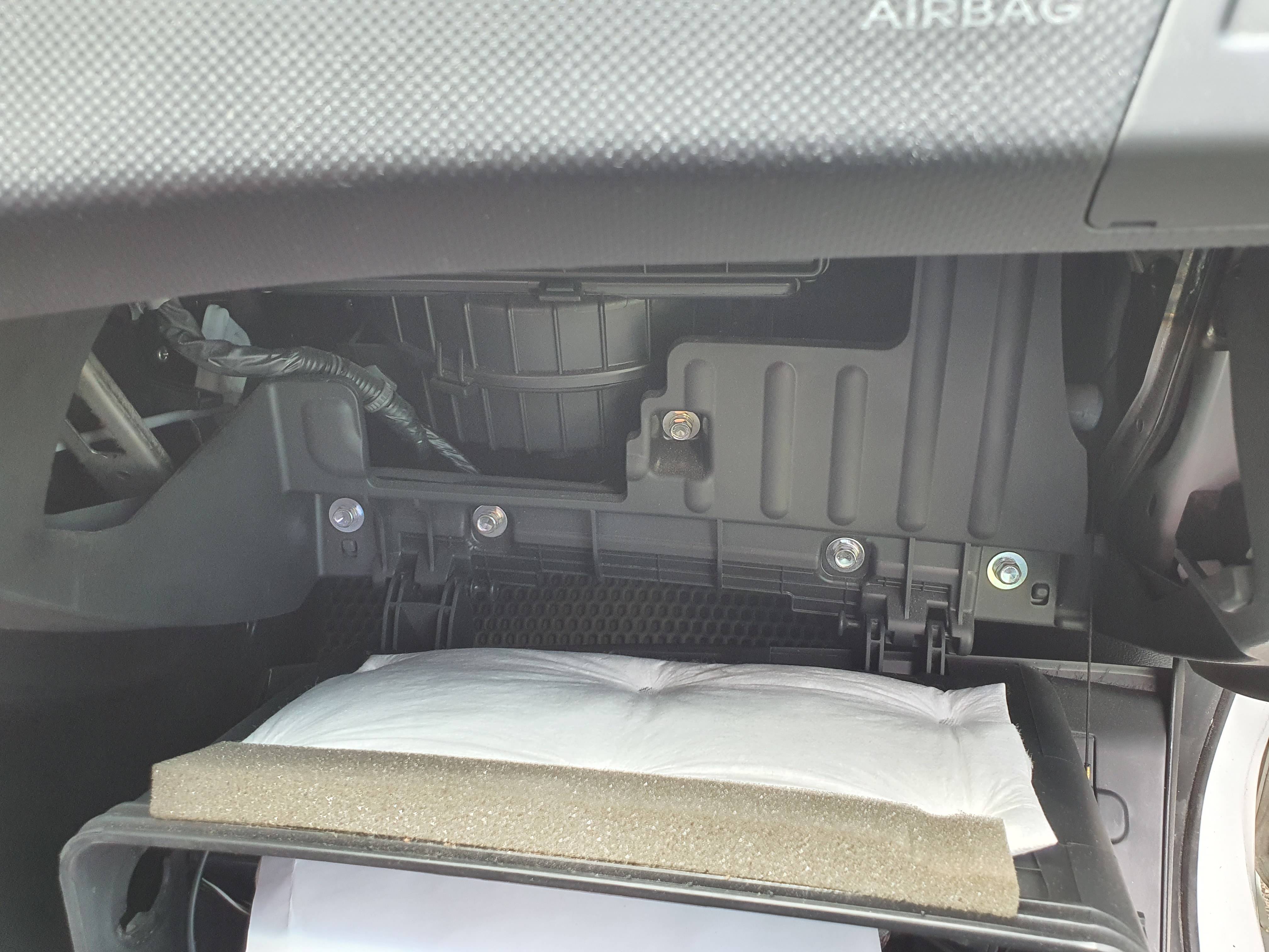 글로브 박스를 열고 글로브 박스를 고정하고 있는 조립체를 풀어 주고 나서야 그 부품을 볼 수 있는 구조이죠.