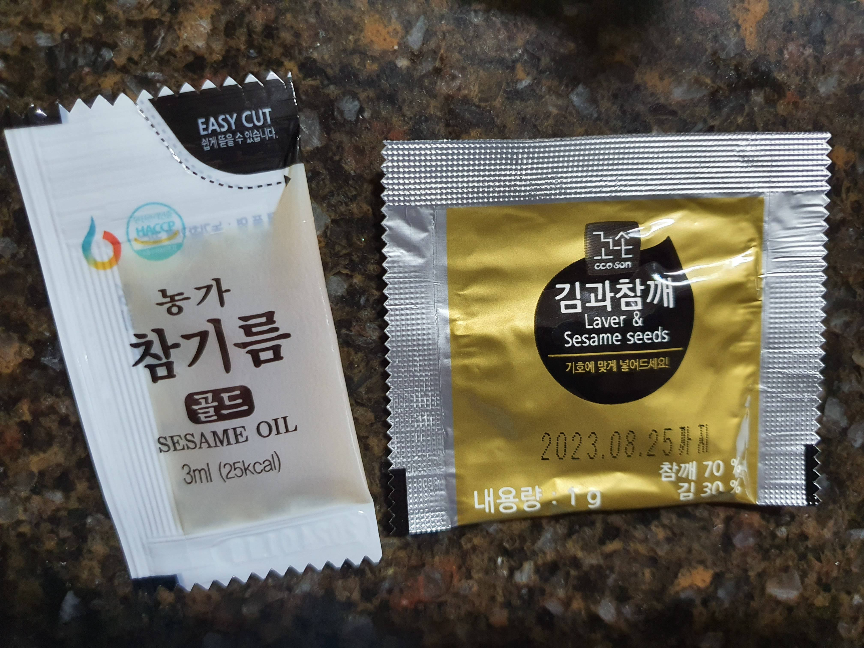 같이 동봉되어 있는 스프의 정체는 참기름과 김과 참깨였습니다.