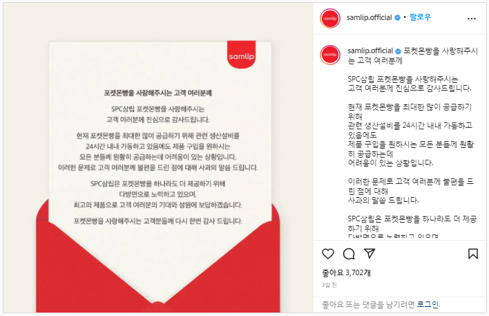 이놈의 띠부씰이 뭐라고 오죽했으면 삼립도 자사 SNS 페이지에 샤니 빵공장을 24시간 주,야로