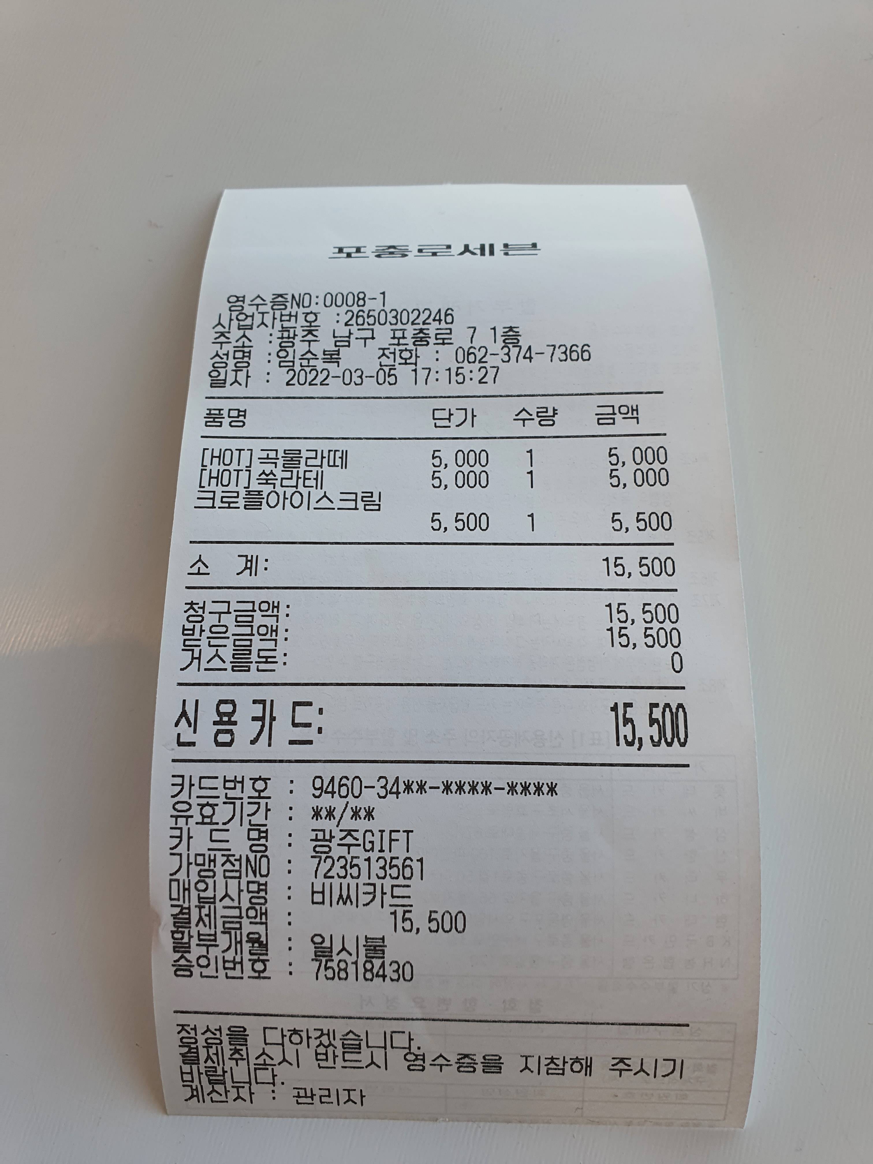 곁들어 먹기 위해서 따로 주문한 "크로플아이스크림 [5,500원]" 입니다.