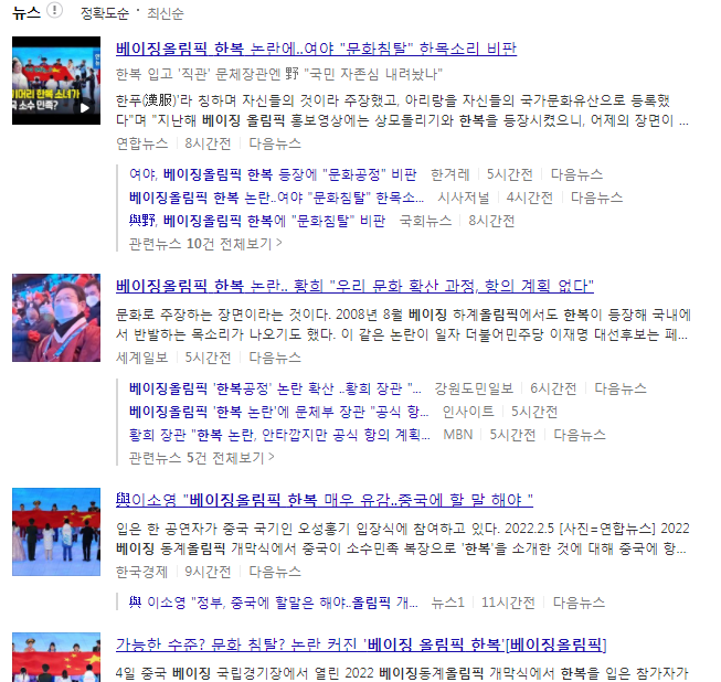 언제부터 중국이 소수민족을 대변하면서 한복이 중국의 문화가 됐는지 기가 찹니다.