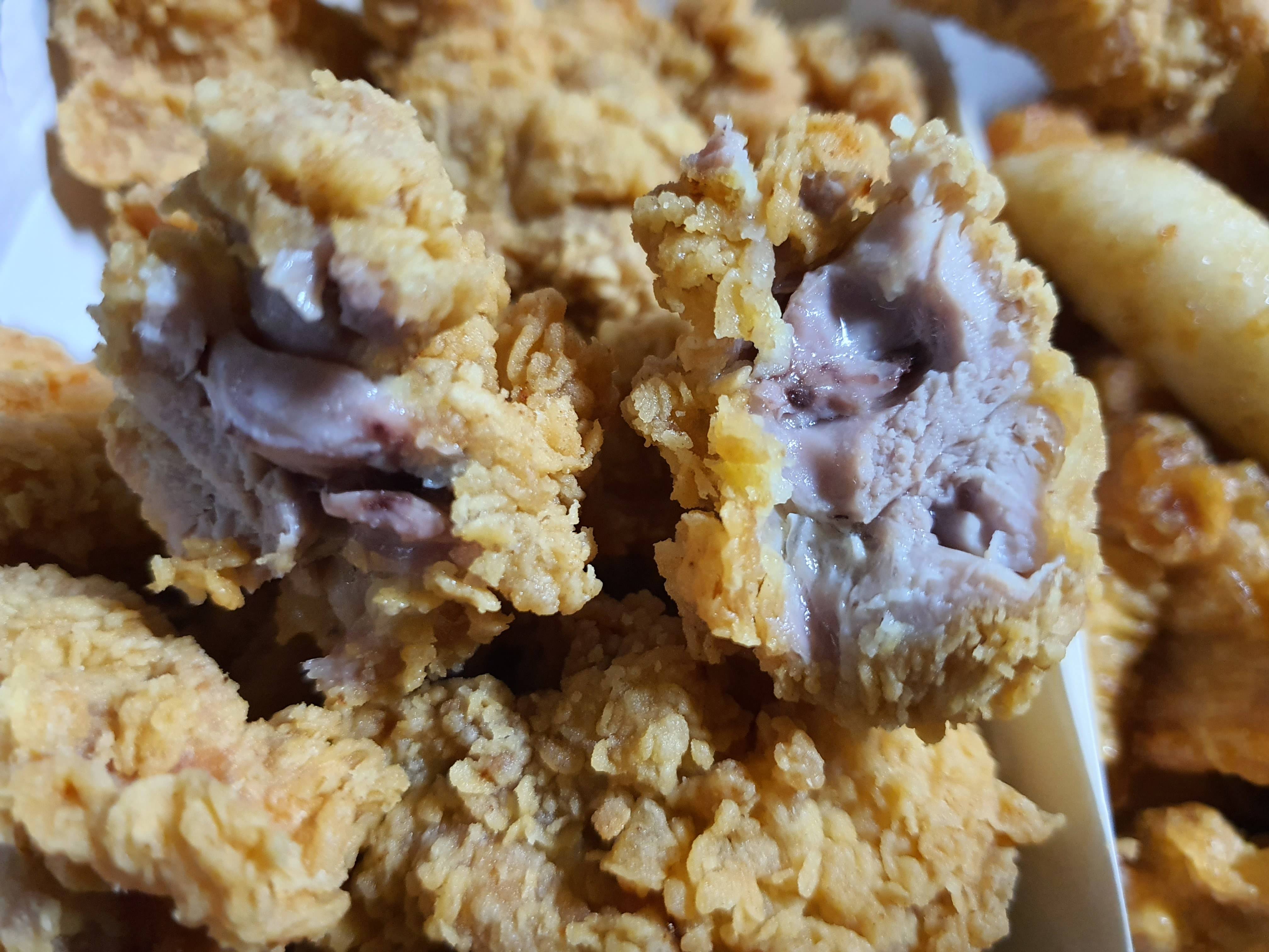 칼로 쏙 잘라본 후라이드 치킨의 속살입니다.