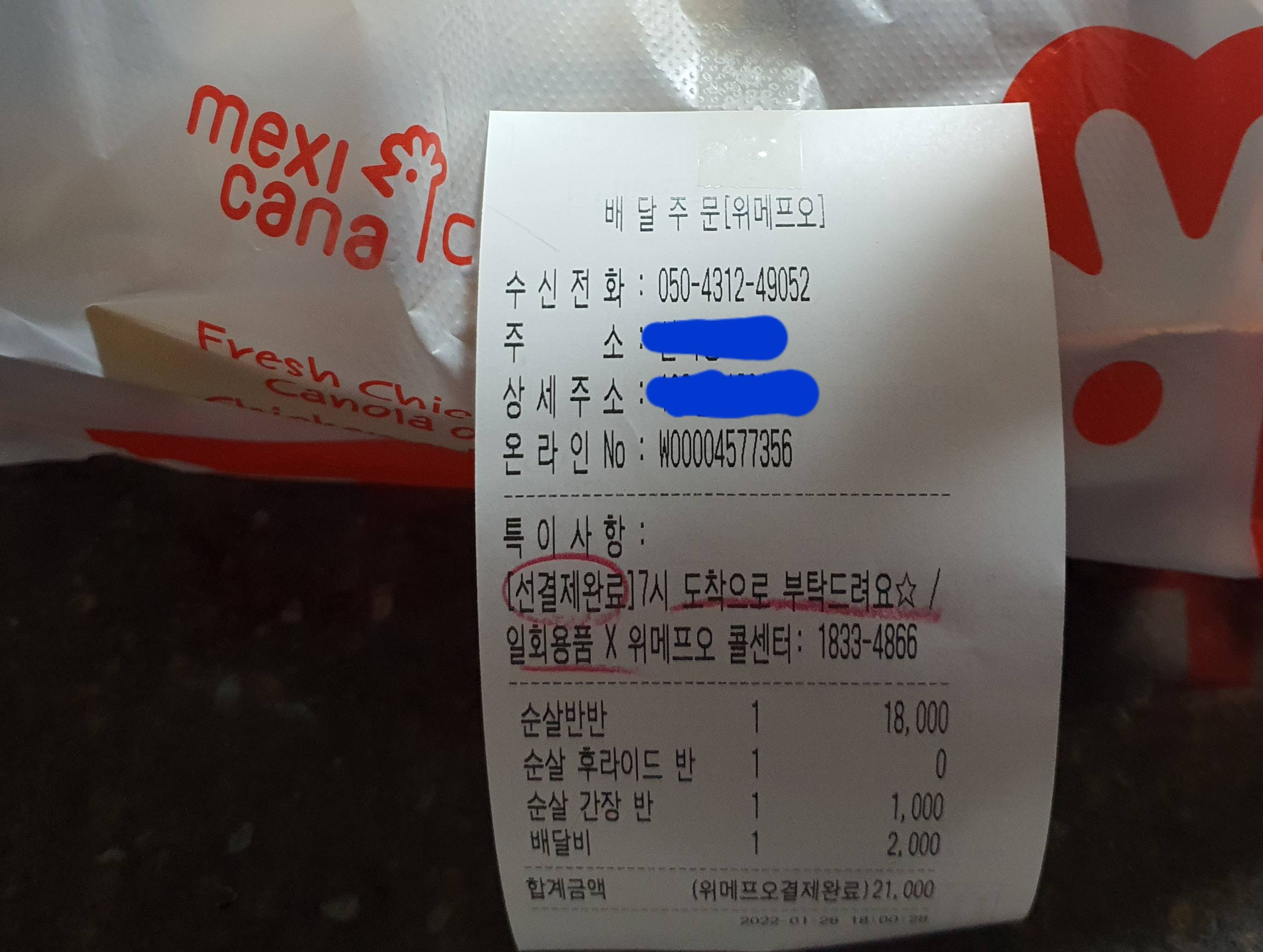 위메프 오 7천원 할인 쿠폰으로 맛본 멕시카나 순살 후라이드&간장 반반 후기