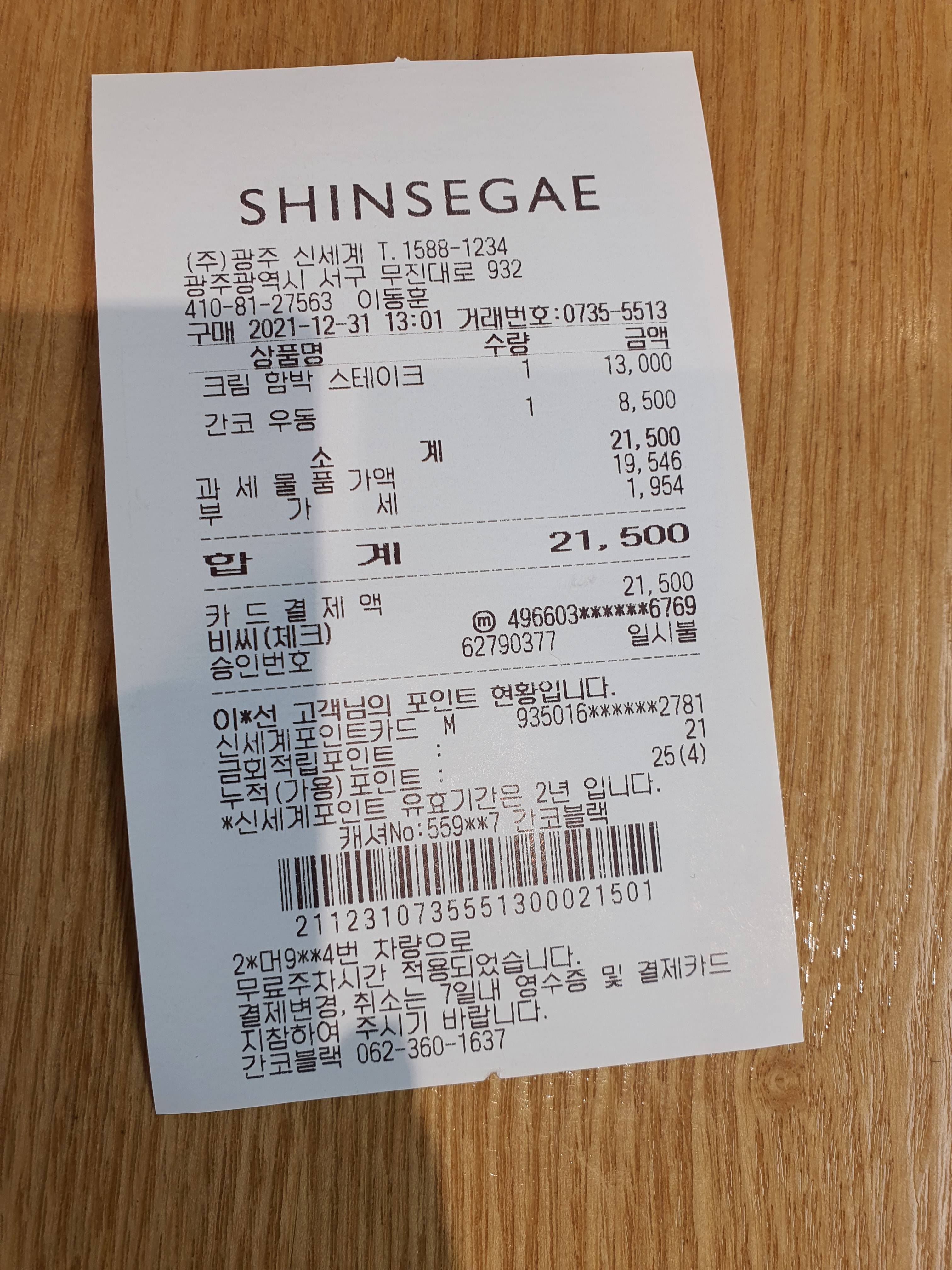 | 2022년 새해 첫 날 광주 신세계 백화점 푸드코트 나들이 - 간코블랙 (22) | 2022.01.11 |