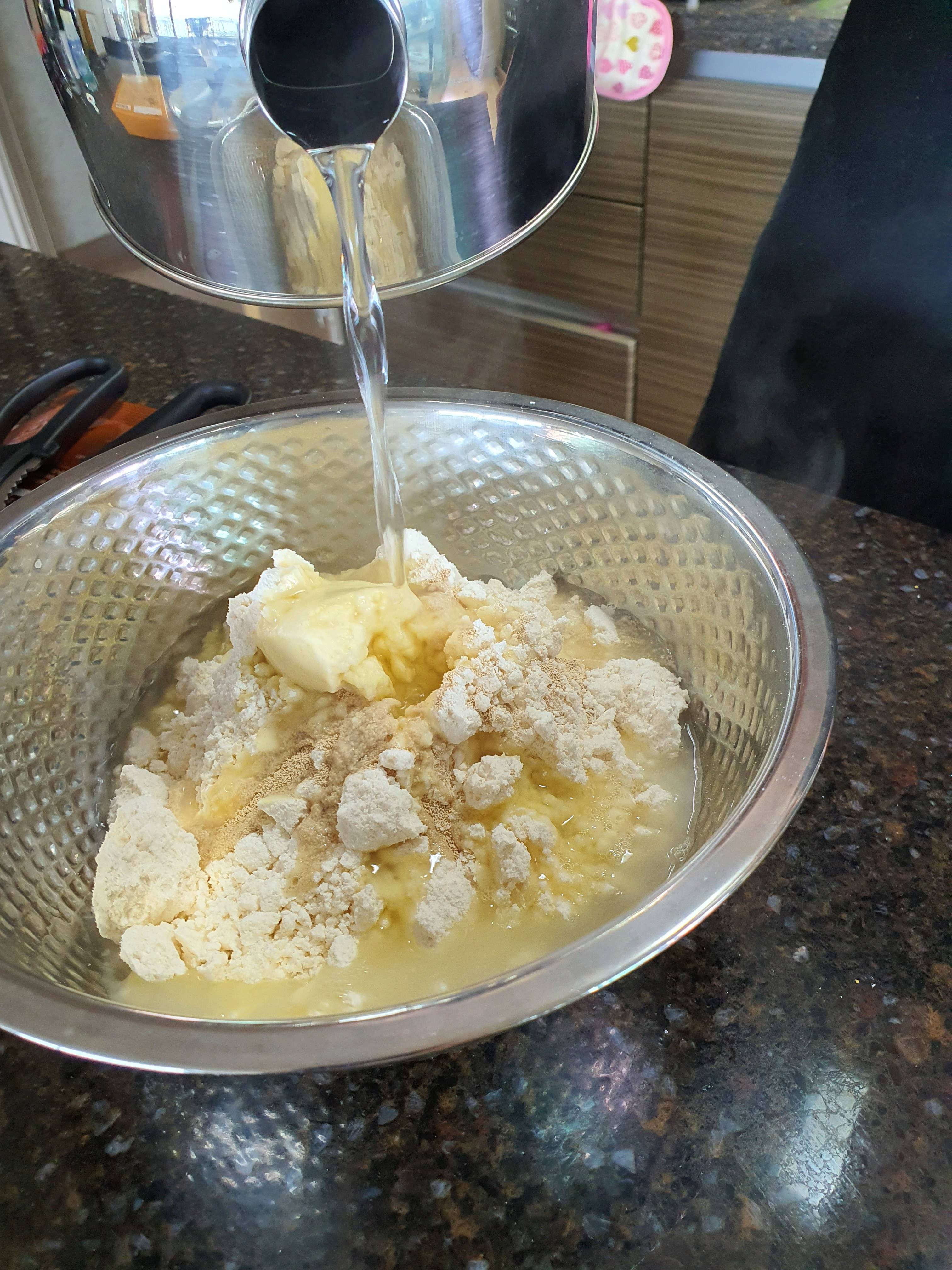 직접 호떡 반죽을 손으로 빚어야 하기 때문에 뜨거운 물 말고 따듯한 물을