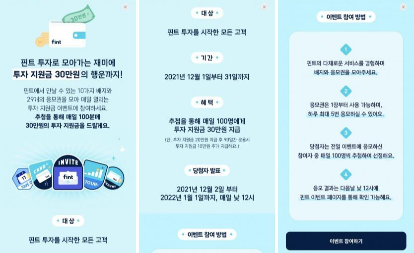 ※ 본 포스팅에 앞서 이번 포스팅은 "핀트(Fint)"에 대한 투자 권유성 글이 아님을 미리 알아 두셨으면 좋겠으며, 원금 손실 시 투자자에게 손실이 전가될 수 있음을 미리 알아두시기 바랍니다.