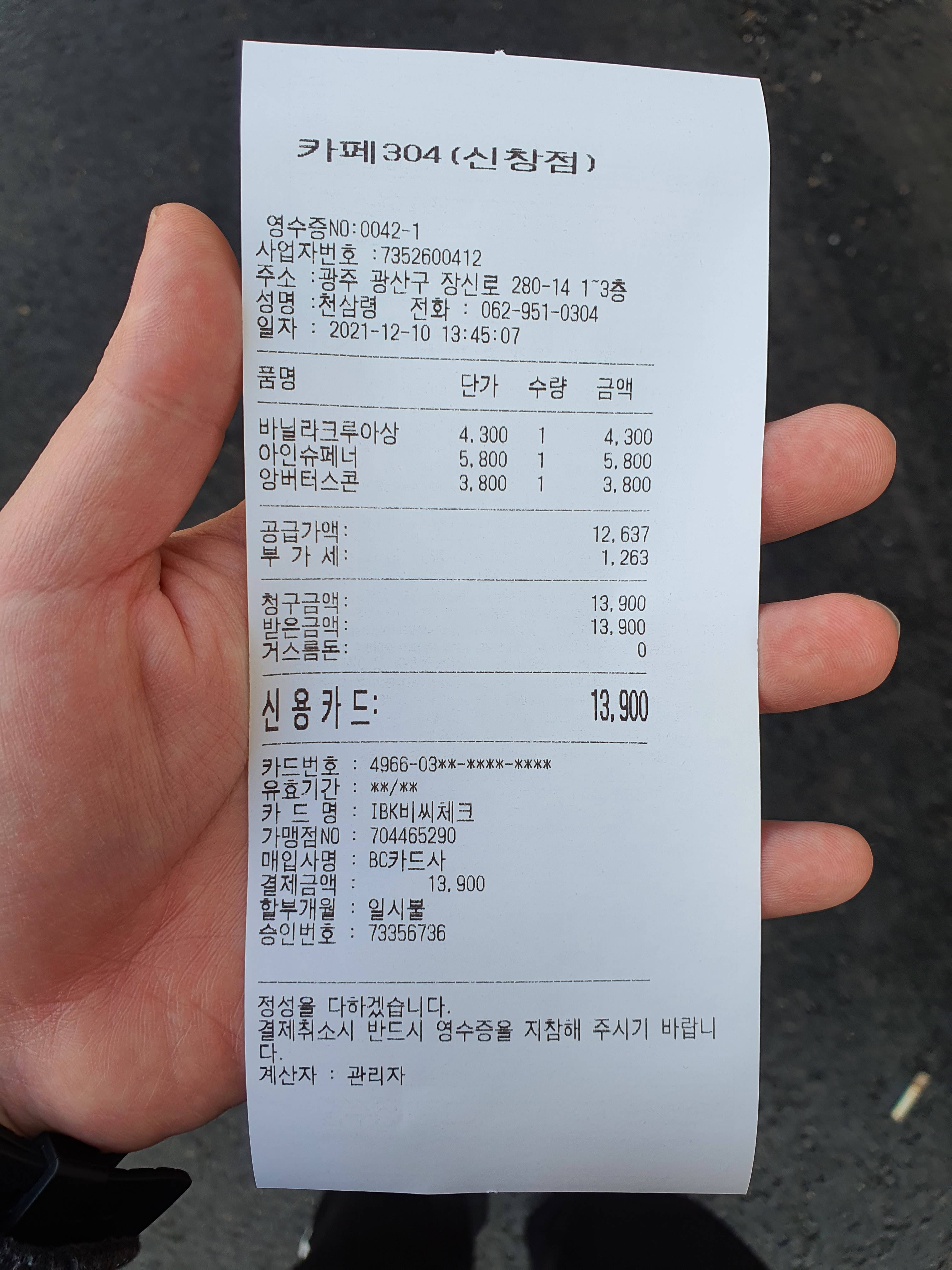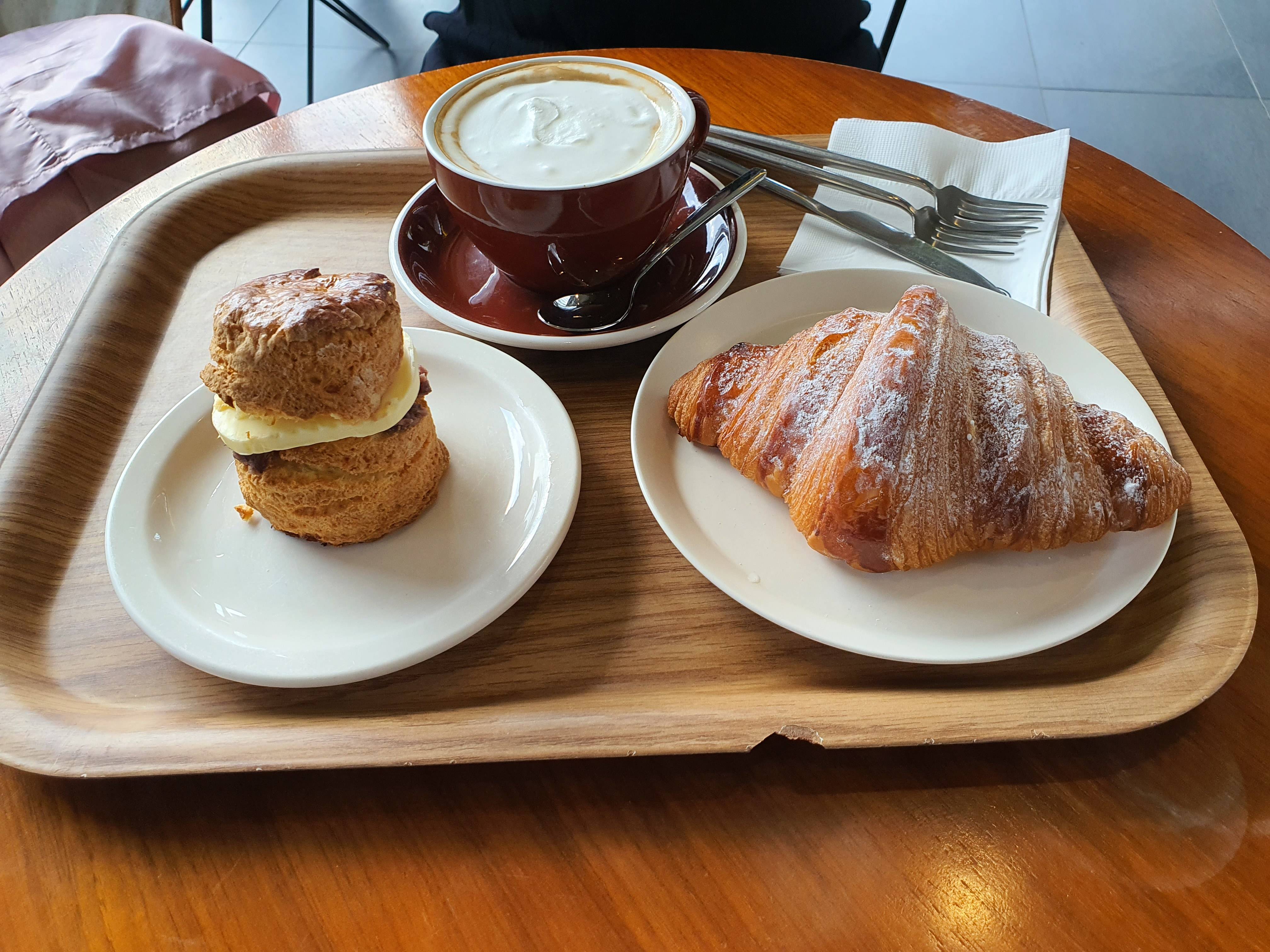 저희가 주문한 바닐라 크루아상(4,300원), 아인슈페너(5,800원), 앙버터 스콘(3,800원)입니다.