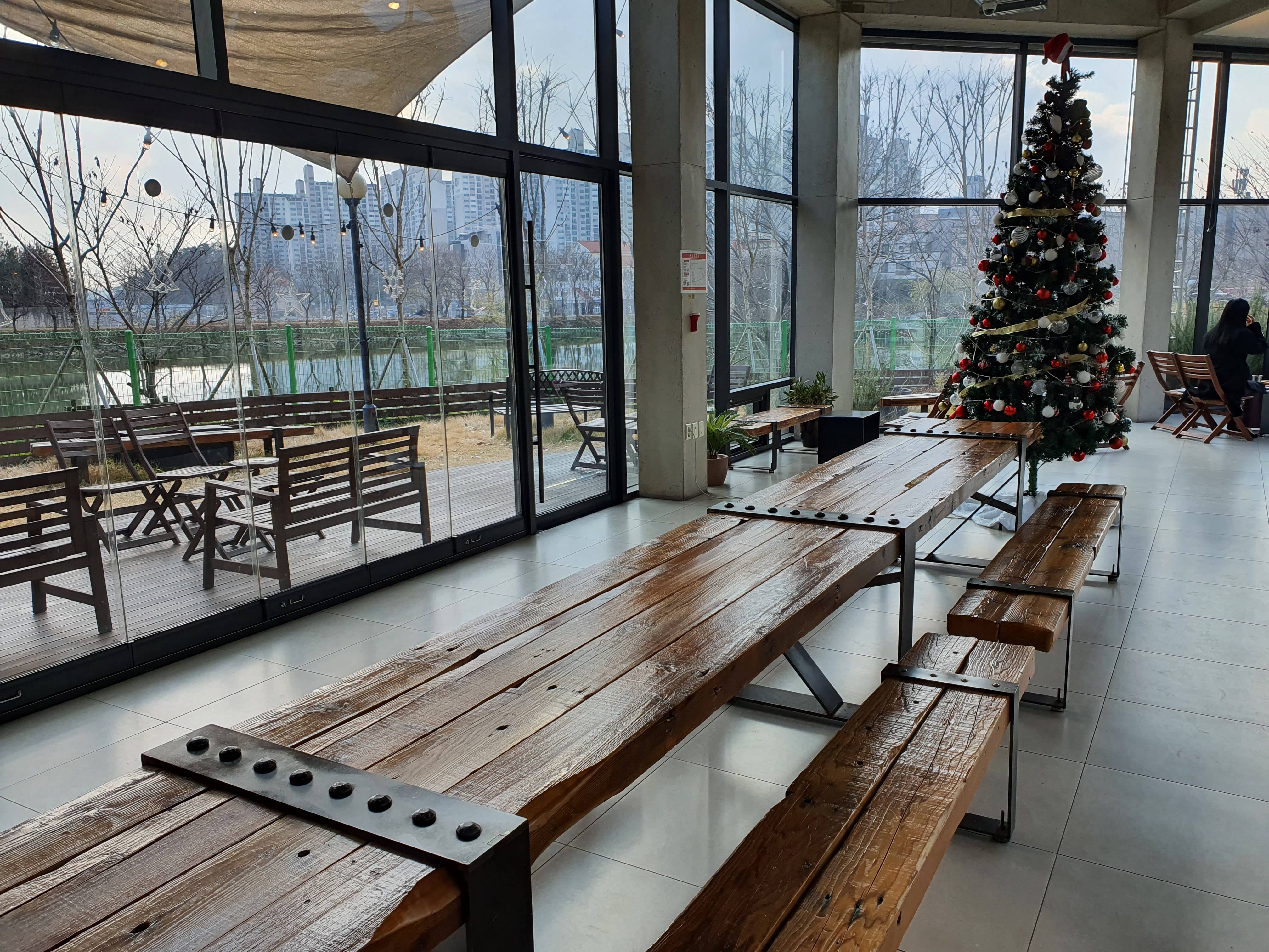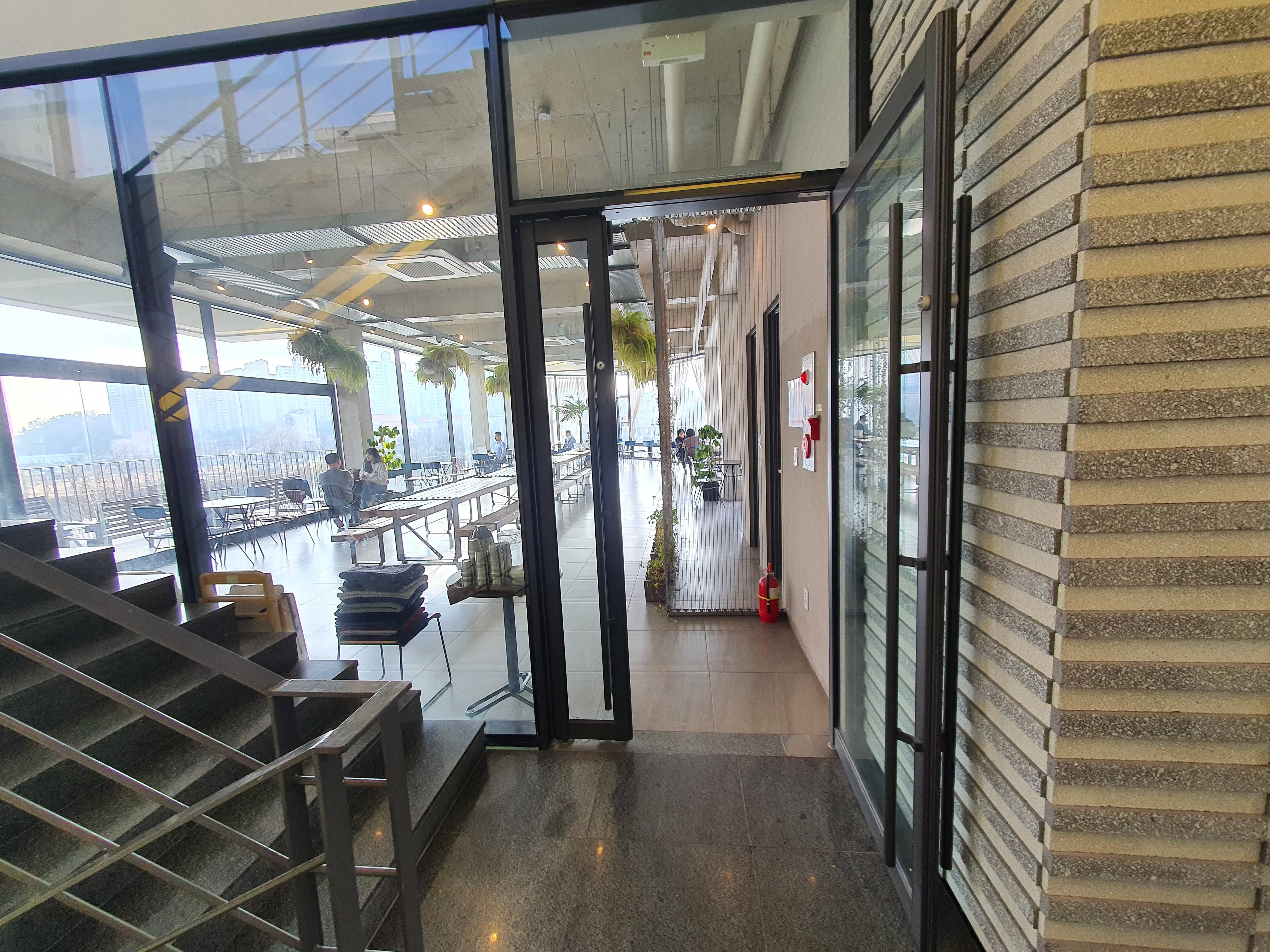 날씨가 조금만 더 좋았으면 아예 바깥 테라스에 앉아 있었을 건데 미세먼지 때문에 그건 다음 기회로...