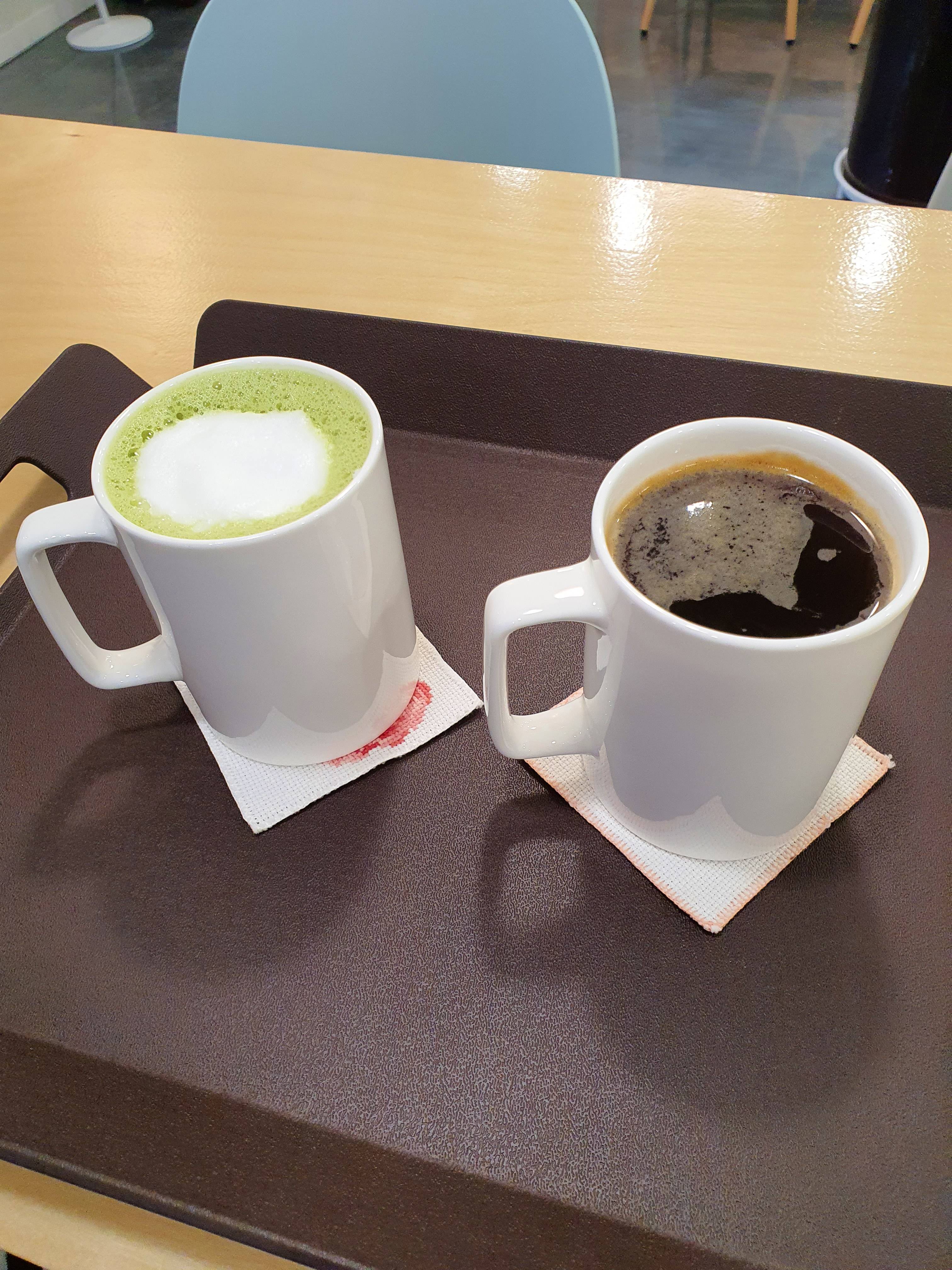 내무부 장관님은 제주녹차라떼(4,500원)와 저는 따뜻한 아메리카노(3,000원)를 각각 주문하였습니다.