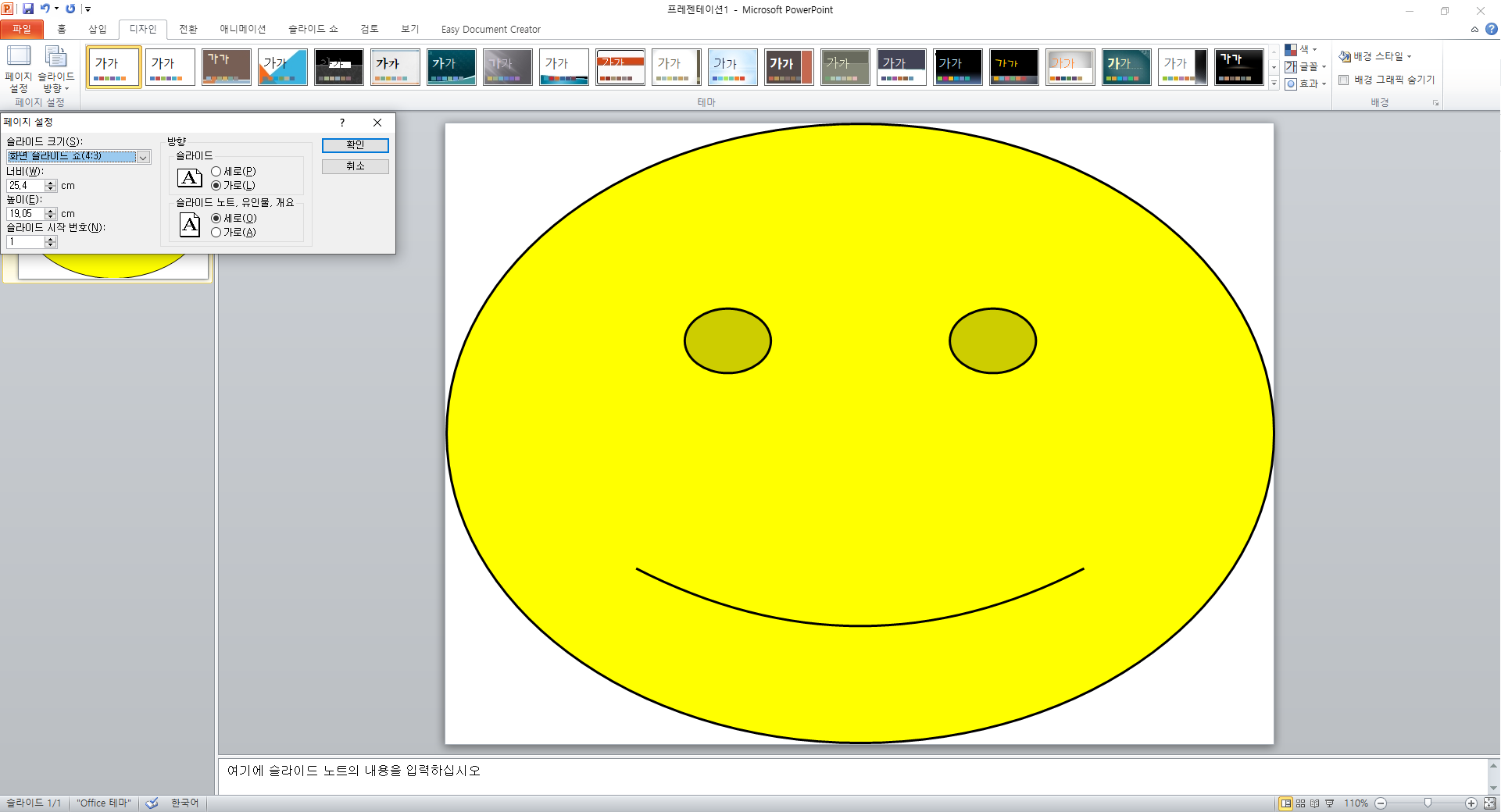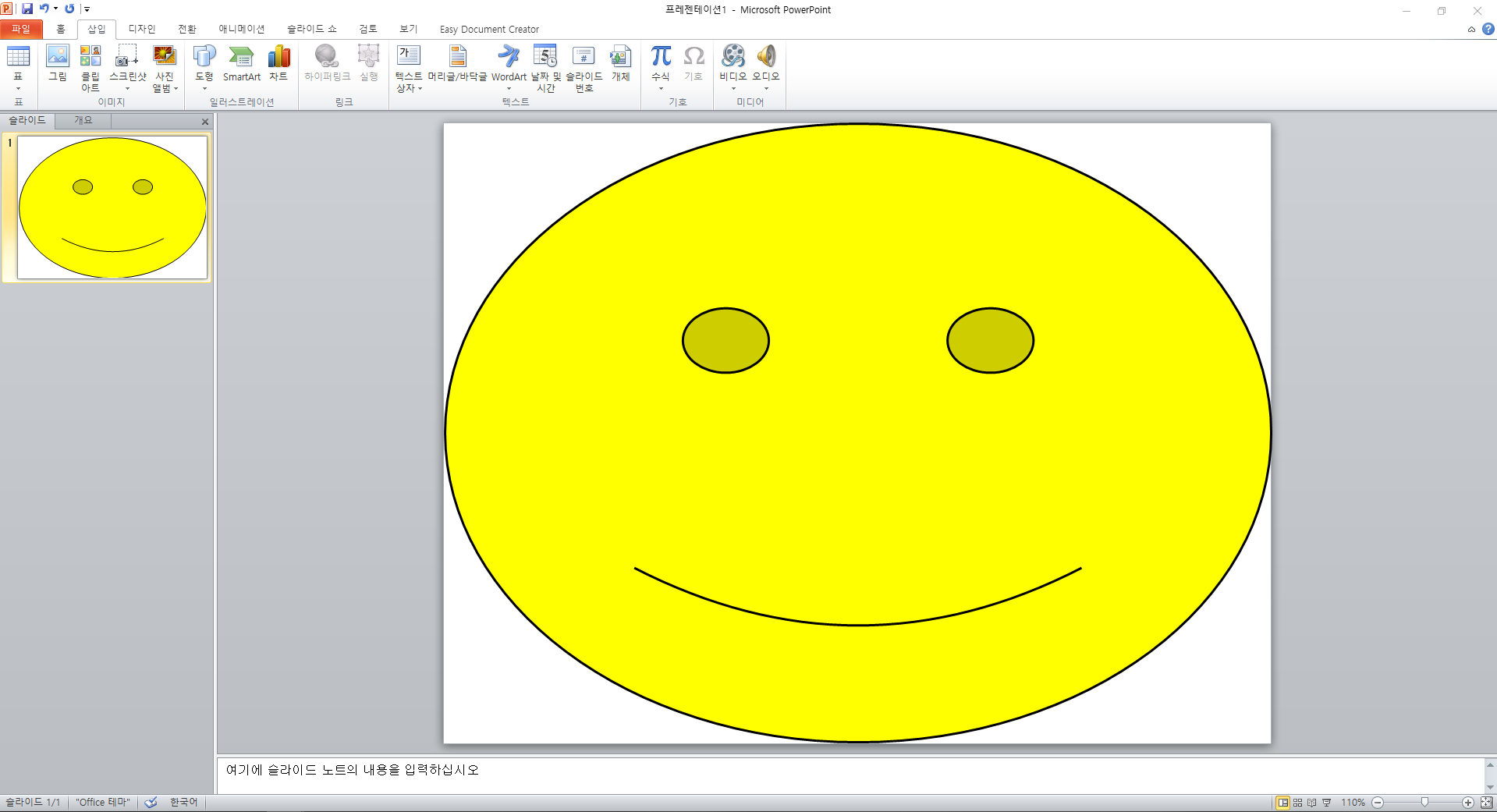 저는 일반 도형에 들어가 있는 스마일 도형을 불러와서 여백없이 최대한 슬라이드에 꽉 차게 넣어 봤습니다.
