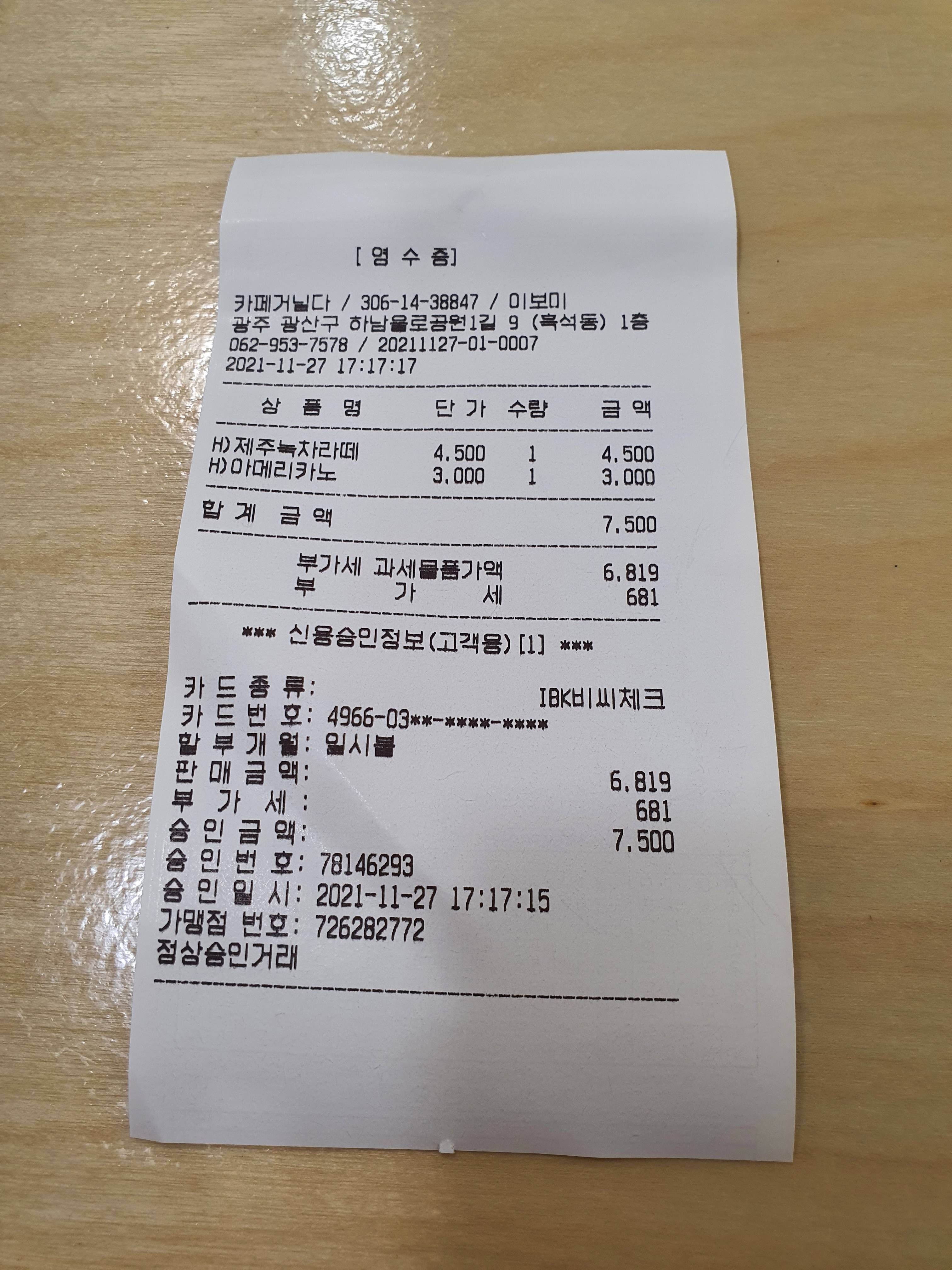아메리카노는 스타벅스의 아메리카노와 비슷한 느낌의 로스팅 향이 났는데 이 가격에 스타벅스 아메리카노를 먹는 느낌이라서 전 좋았습니다 ^^.