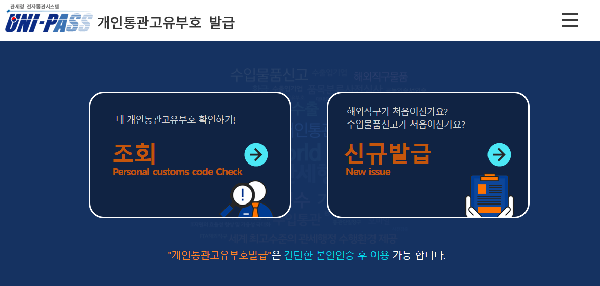 간단한 절차를 통한 UNIPASS 개인통관고유부호 재발급 방법