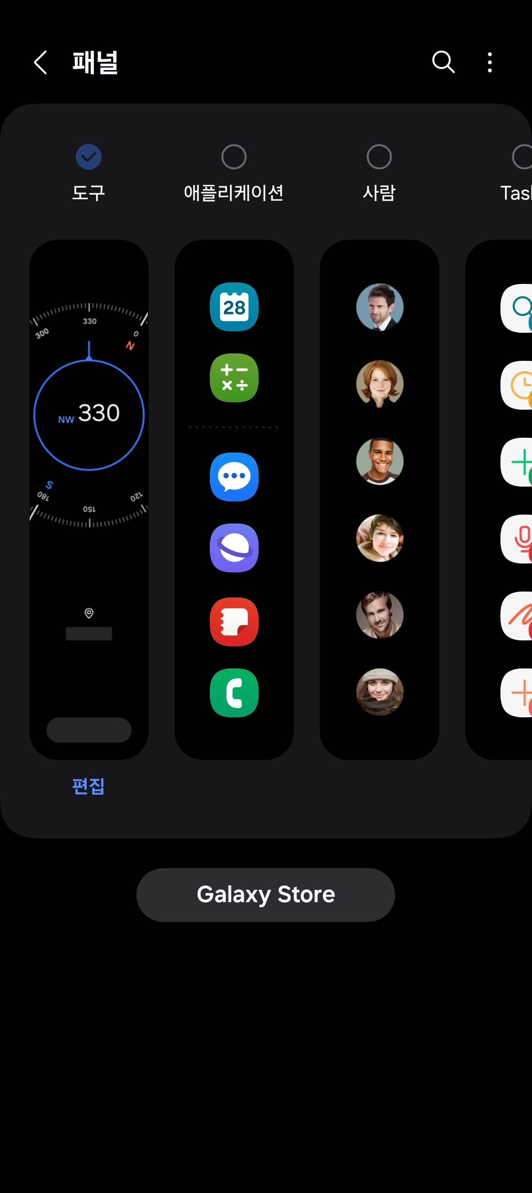 "도구"를 선택하면 엣지패널이 나침반으로 변경이 될 겁니다.