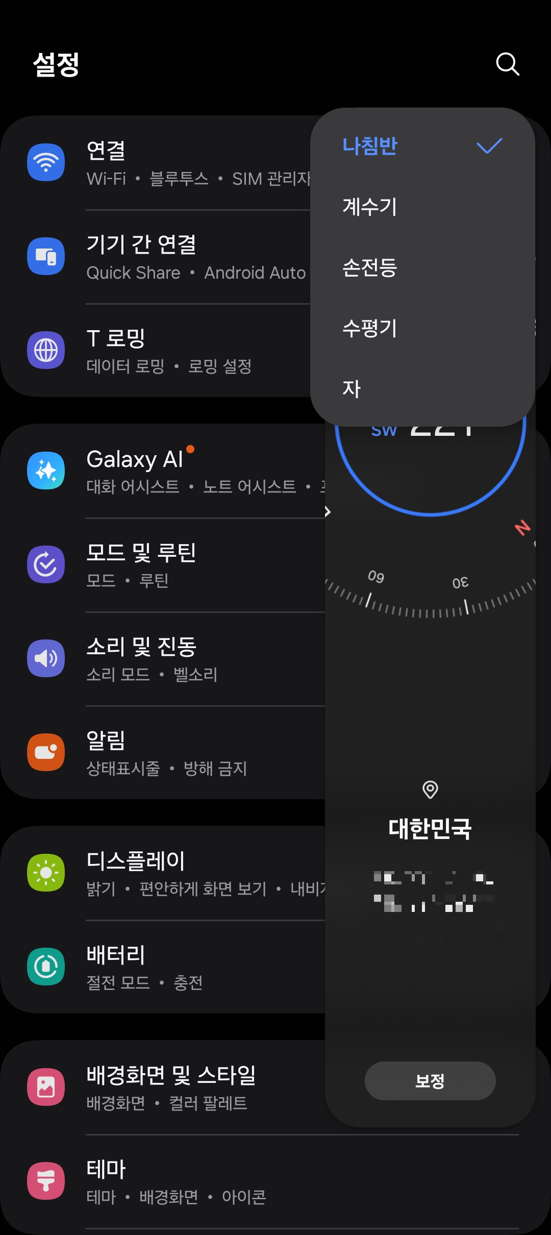 그러면 나침반 외에도 여러 다른 기능들이 제공되는 걸 볼 수 있습니다.